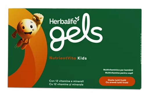 Herbalife Gels NutrientVita Kids este un complex multivitaminic premium conceput special pentru nevoile nutriționale ale copiilor în creștere. Cu 12 vitamine și minerale esențiale, susține dezvoltarea sănătoasă, imunitatea și energia celor mici.
