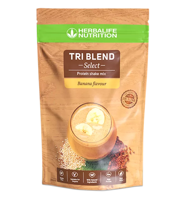 Herbalife Tri Blend Select Banana — shake proteic 100% vegan cu proteine complete din surse vegetale.